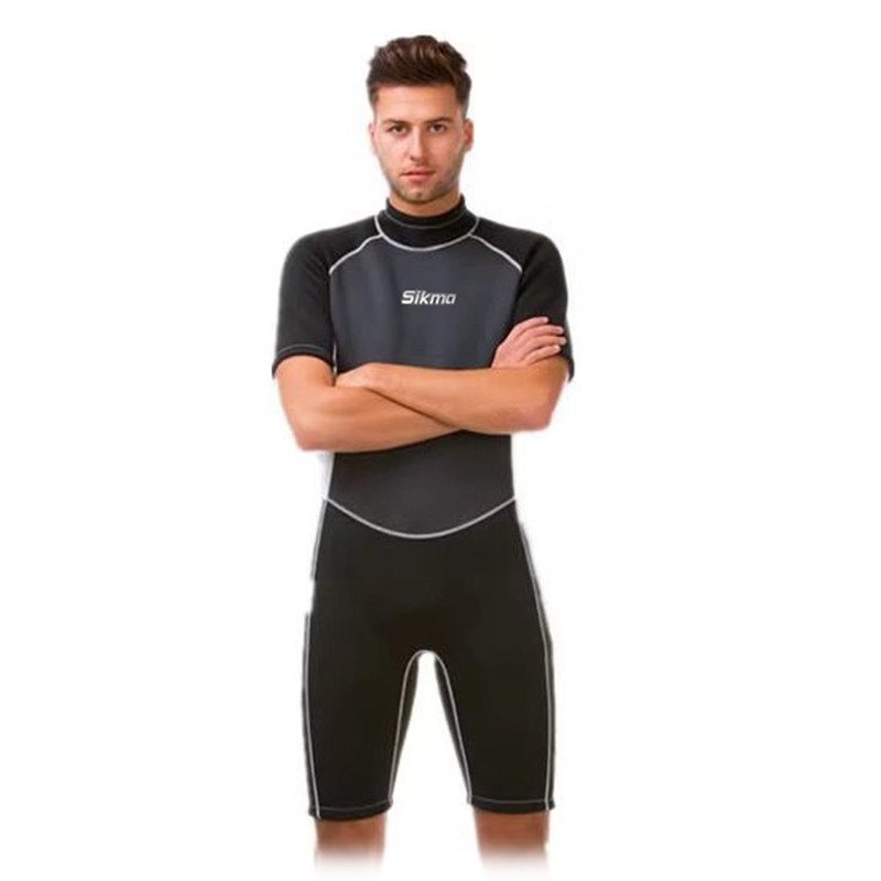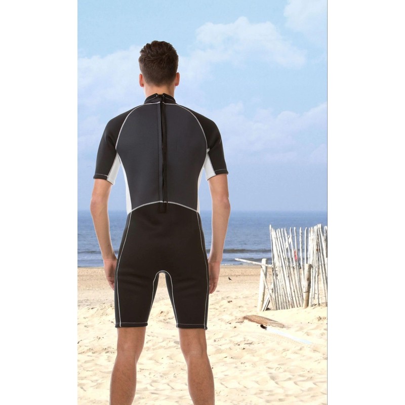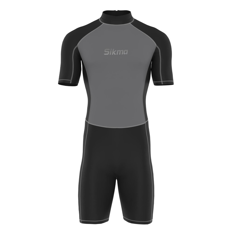 Sikma Men’s Wetsuit 3mm Neoprene Surfing Diving Suit Short Sleeves Back Zip Flexible and Comfortable Perfect for Swimming, Scuba Diving, Snorkeling (Black/Grey, Medium)