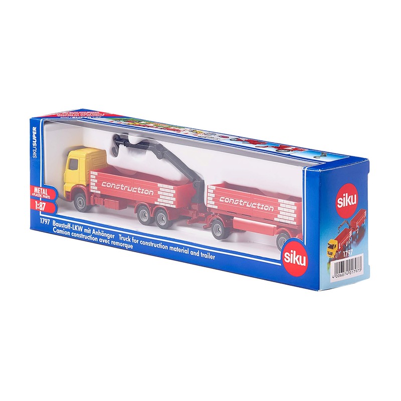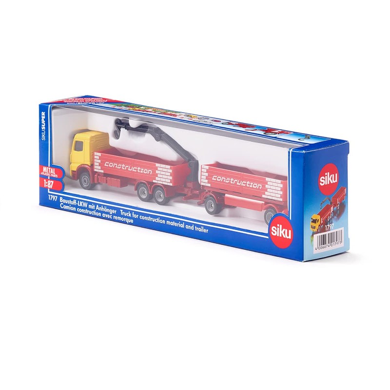 - Contents: 1x siku 1797 construction truck with trailer, Scale: 1:87, Material: Metal/Plastic, Dimensions: 21.6 x 3 x 6.3 cm, Weight: 0.091 kg, Colour: Red/Yellow, Series: SIKU Super
