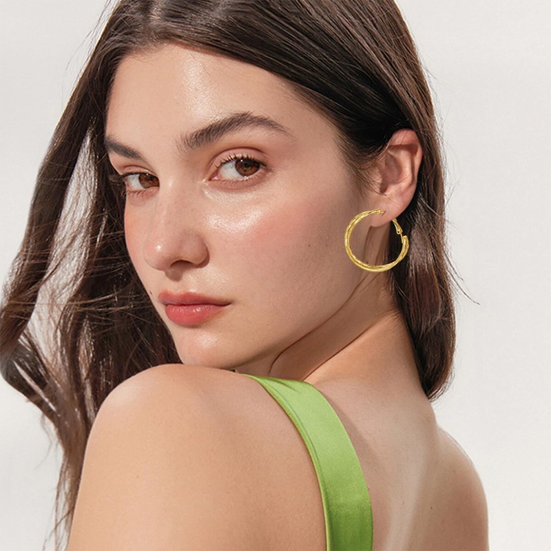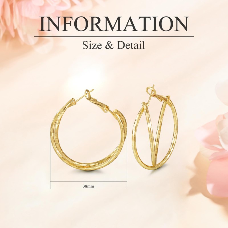 - ❤【Suitable Size】Gold plated hoop earrings for women diameter 1.50''/38mm. Fashion large hoop earrings combined with the safe click top closure design, making the hoop earrings easy to open and close, suitable for most women's earlobes.
