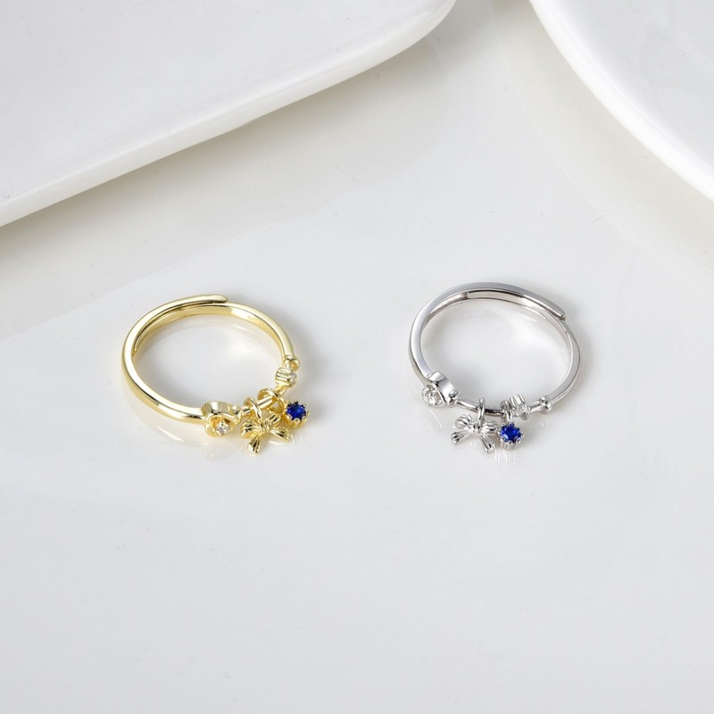 SILBERTALE Verstellbare Silberringe Damen 925 – Zirkonia Ring mit Charm Anhänger Schleife/Kleeblatt/Kreuz, Sterling Silber Ring in Gold & Silber