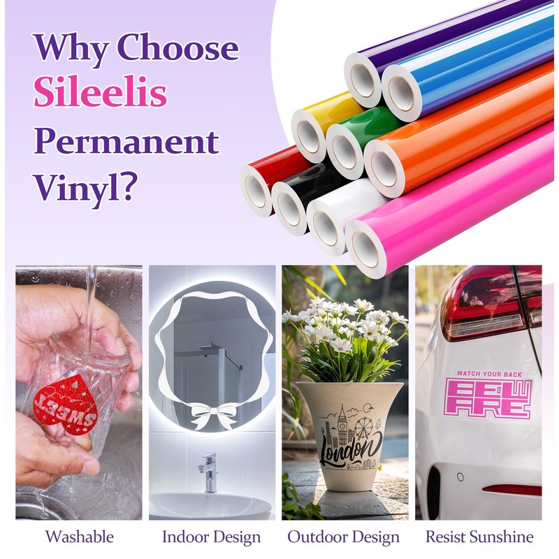 - STRONG ADHESION: Sileelis permanent vinyl has strong adhesion. It can be easily applied to smooth, dry surfaces using vinyl transfer paper. The adhesive vinyl is highly durable and will keep your artwork color-fast for a long time