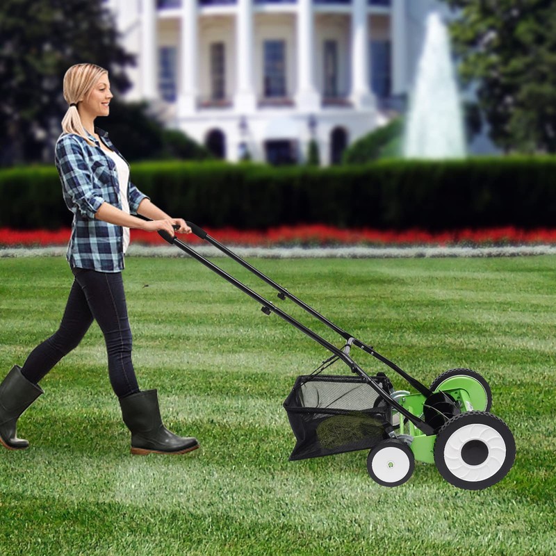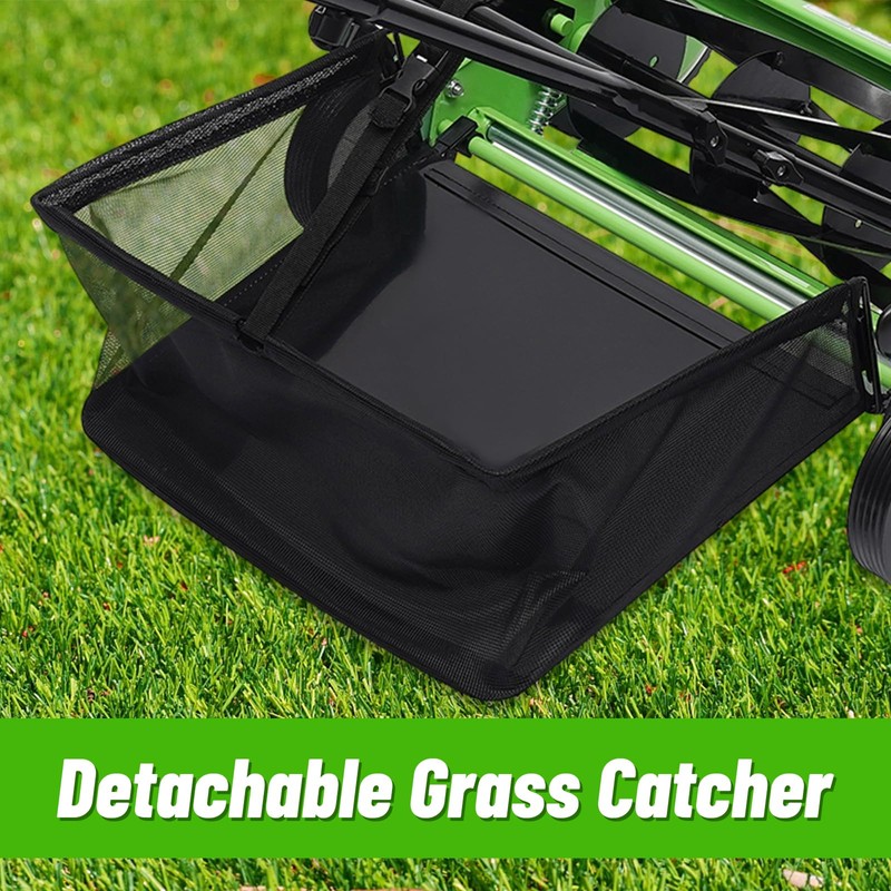 - 🌾【With Detachable Grass Catcher】The manual reel mower comes with a removable, large-capacity grass collection basket that collects the excess grass that is cut, making it easy for you to clean up your site. You can also use the collected grass for more purposes.