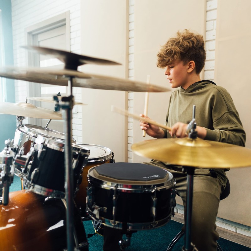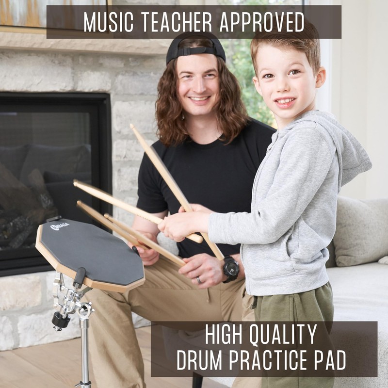 - Practice Pad - The 12” rubber foam drum pad is equipped with a special layer, so you can enjoy playing the drums without disturbing your family, roommates or neighbors; Improve your technique with the pad no worry from noise complaints