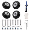 - Replacement tire kit includes: 4 casters (diameter 1.6 inches (40 mm)), 8 bolts (axle 1.2 inches (30 mm) x 1.6 inches (4 mm)), 8 screws, 8 washers, 2 wrenches, 1 gloves, 1 saw for cutting