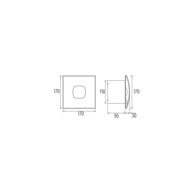 - Low-noise exhaust fan: the side and middle fan is the most efficient and quiet extractor for installation in the bathroom. It can move an airflow of 190 m3/h, with a sound level of 39 dB and a power consumption of 20 W.