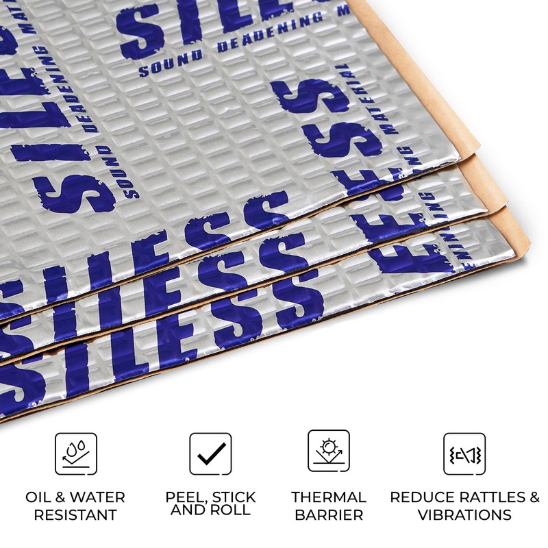 - ★ Ease of Installation — SILESS VIBRO Damping Material is easy to install with a “peel and place” application. Simply trim the pieces to fit, peel and place and hand roll to ensure good adhesion. No messy spray-on paints or adhesives are needed to install this product.