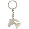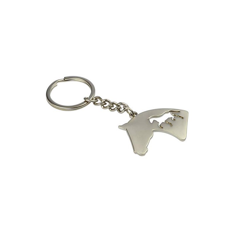 This cast metal keyring in the shape of a horse head (45 x 33 mm) is something very special thanks to the cut-out silhouette of a horse. Its matte surface finish makes it elegant and high quality.