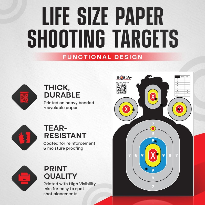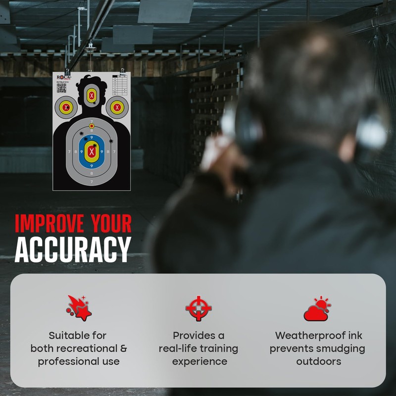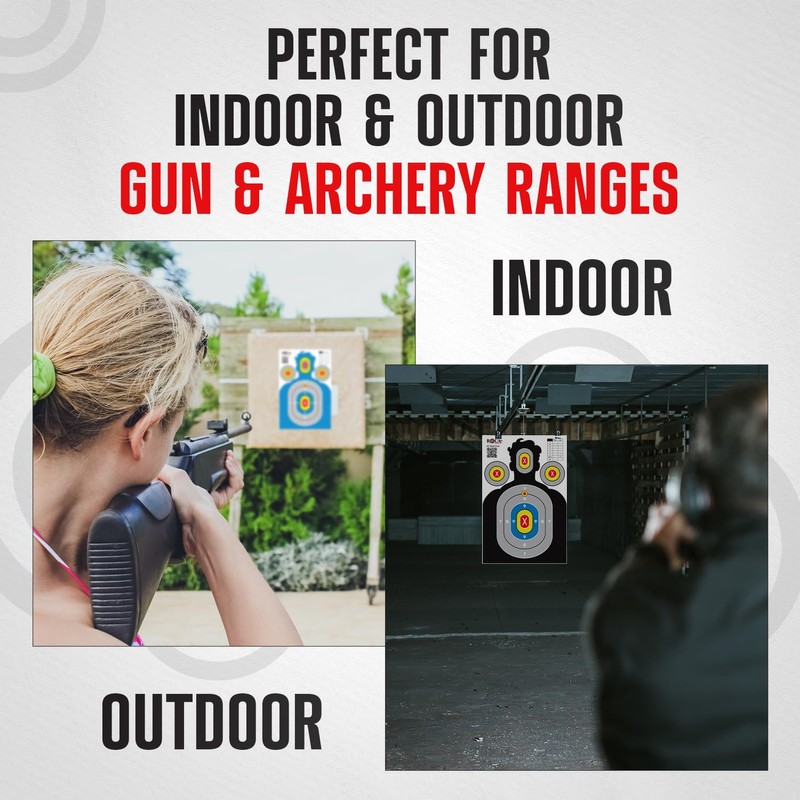 - Versatile for Indoor Gun Ranges: Perfect for any environment, our gun range paper targets work in both indoor and outdoor setups. Designed for clear hit feedback and enhanced practice, these silhouette-style sheets improve accuracy and save you time between target changes.