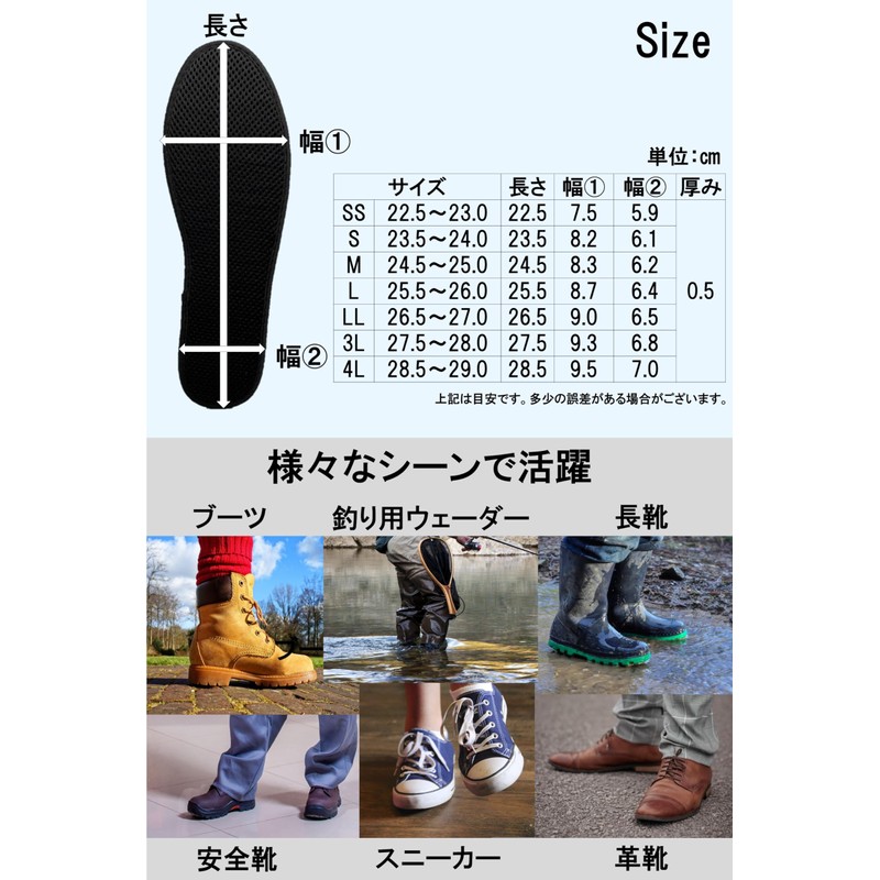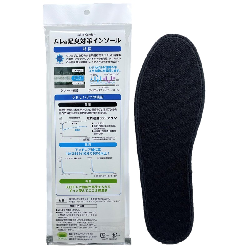 - (Feels effective with any shoe) The main sole itself absorbs moisture. Prevents stuffiness in shoes (leather, safety shoes, boots, rain shoes, etc.) that were unavoidable with mesh and perforated insoles