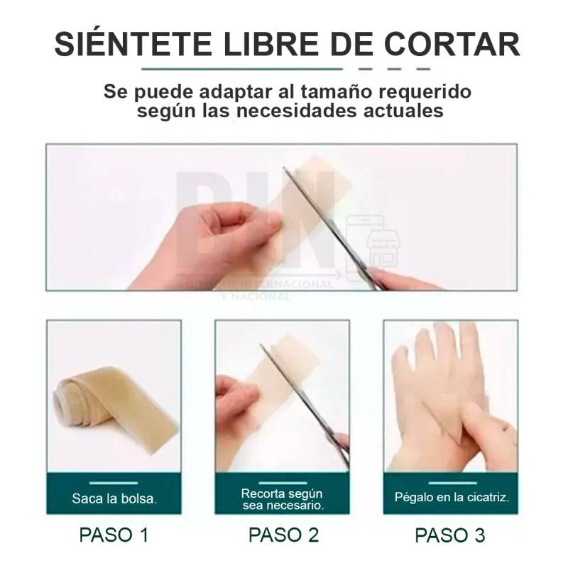 • Modo de aplicación: Corte ajustable según el tamaño de la cicatriz