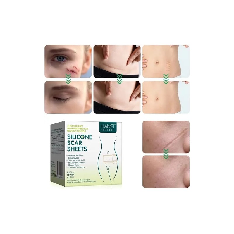 Transforma la apariencia de tu piel con las láminas de silicona ELAIMEI. Diseñadas para reducir, suavizar y mejorar cicatrices de manera no invasiva, con resultados visibles.