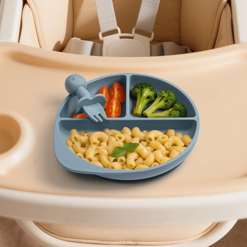 - COMPLETE SET: 7-piece baby feeding set includes a divided plate and 6 toddler-sized utensils in khaki color for a coordinated mealtime experience