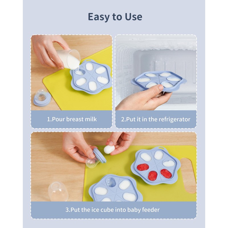 Silicone Baby Fruit Food Feeder (2 Pack) with Freezer Nibble Tray, Breastmilk Popsicle Molds for Baby Teething Relief, Silicone Feeder for Safe Infant Self Feeding, BPA Free, Dishwasher Safe, 3 Month+