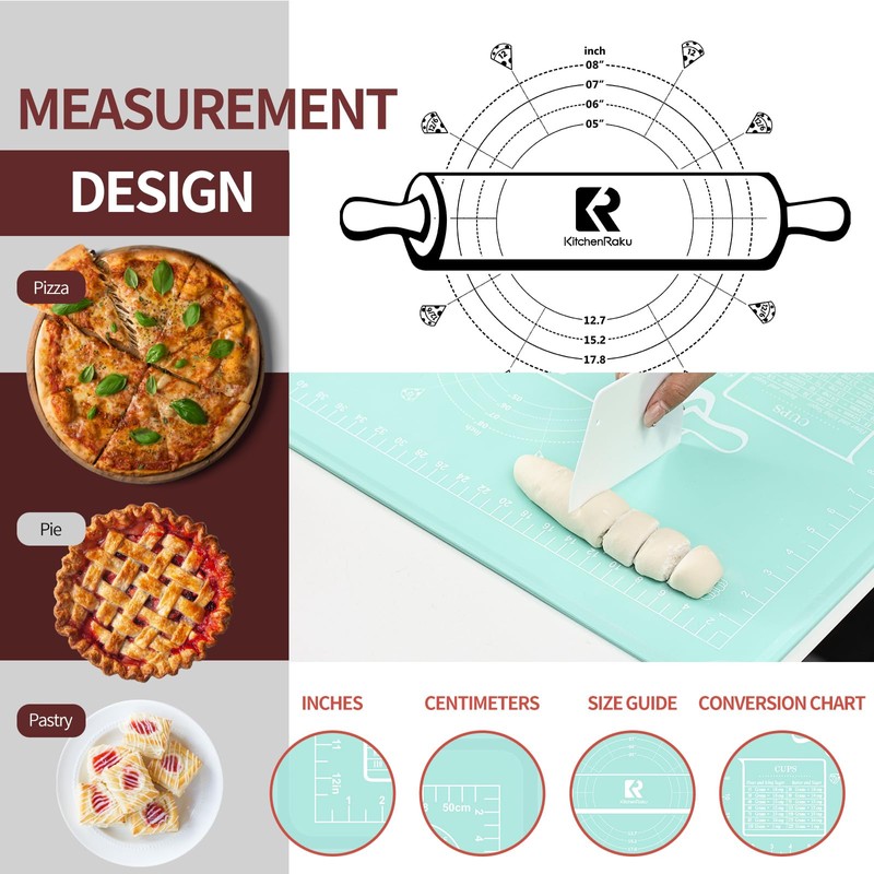 - 【Easy Cleaning & Dishwasher Safe】Our dough rolling mat has a non-stick surface. If the mat is greased or if the dough sticks to the surface, it can simply be washed by hand with soapy water and air dried to keep the worktop clean. This baking mat is dishwasher safe.