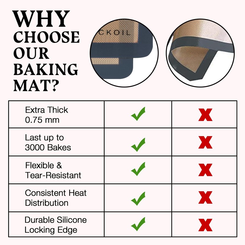 - Must Have Baking Tools: Silicone cooking mats for baking great for professional bakers,cooks, beginners,families, schools, and restaurants. KICKOIL's silicone baking mats come in vibrant colors that make healthy eating exciting. Ideal for baking, cooking, roasting, steaming, drying, and grilling, these baking essential and cooking essentials are versatile gifts for any occasion—Mother's Day, Father's Day, Christmas, and more. Perfect for new homeowners, newlyweds, and anyone who loves to cook