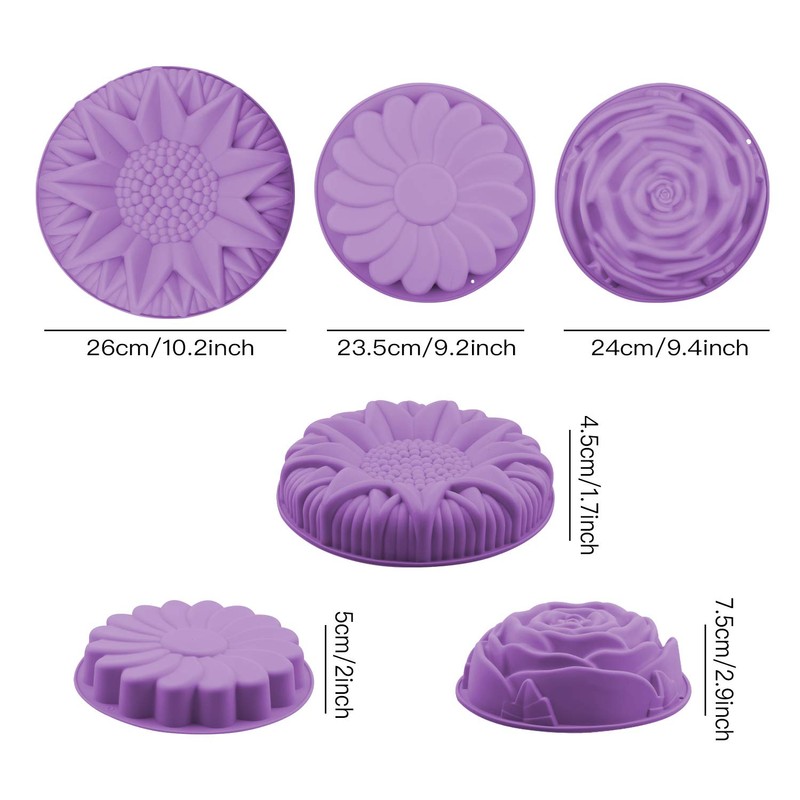 - 【Non-Stick Baking Trays】- There are 3 different shape large baking molds,Large round sunflower shape, chrysanthemum chape and rose shape.The different shape will help you to make different Cake, daily Bread, Pie, Flan and Tart.