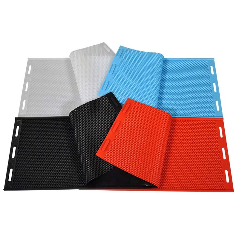 **Description of beeswax foundation silicone mold:** The beeswax foundation silicone mold was used for making foundation. It is suitable for making low quantity foundation. Or you want to make foundation by yourself. **Parameters of beeswax foundation silicone mold** Place of Origin: China (Mainland) Material: Flexible Silicone Color: Black, blue, white,red Size: 197 mm x 417 mm(7,72 x 16,34 inches)