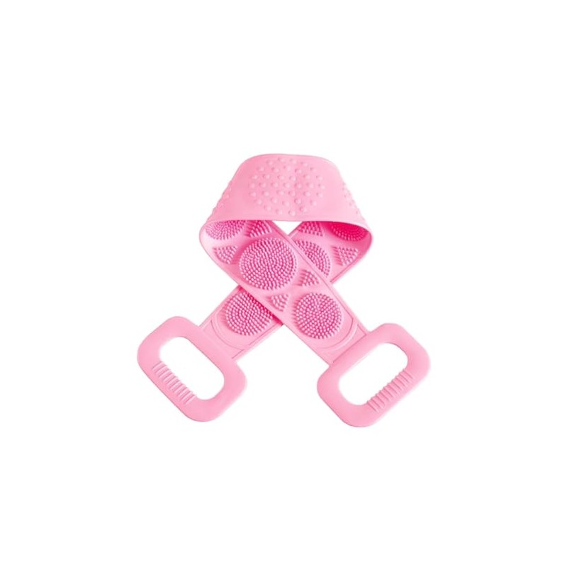 Silicone Body Scrubber – Deep Cleansing Bath Brush with Long Handle for Shower & Massage (Pink)