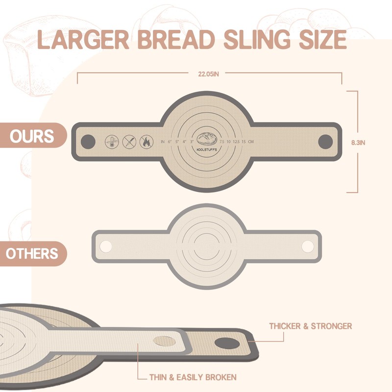 • [REUSABLE]- Silicone baking mat is made of food-grade silicone, BPA-free. Sourdough silicone bread sling is extremely flexible, not easy to deform or break, durable.