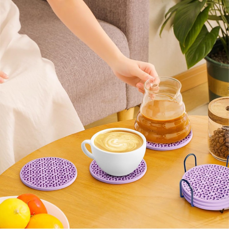Silicone Coasters Set of 6,Drink Coasters with Holder,Absorbent Coaster for Hot or Cold Drinks,Non-Slip, Non Stick,4inch