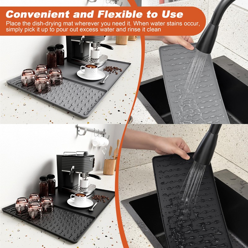 - Innovative Two-Part Design: the main mat provides a spacious heat-resistant surface, and the removable drying mat can be used independently, efficiently draining and air-drying utensils, keeping the countertop clean and dry