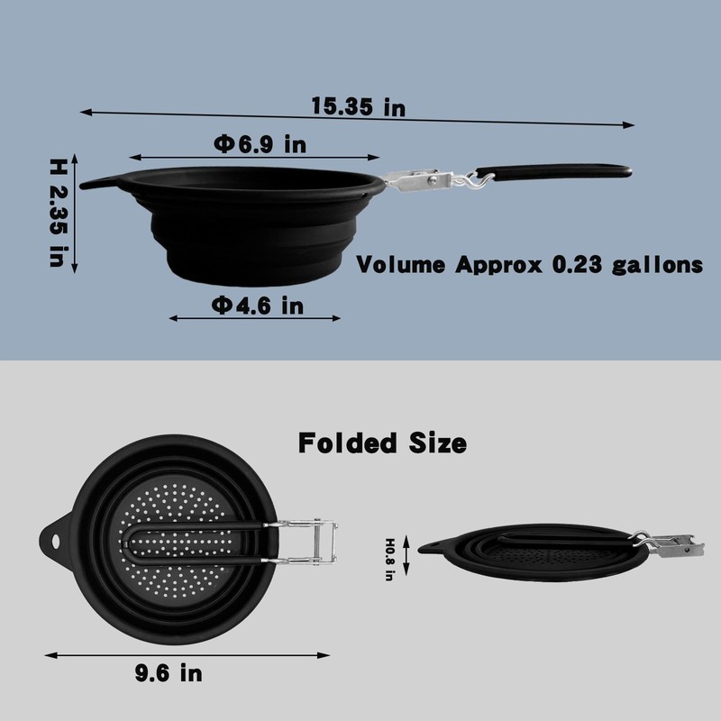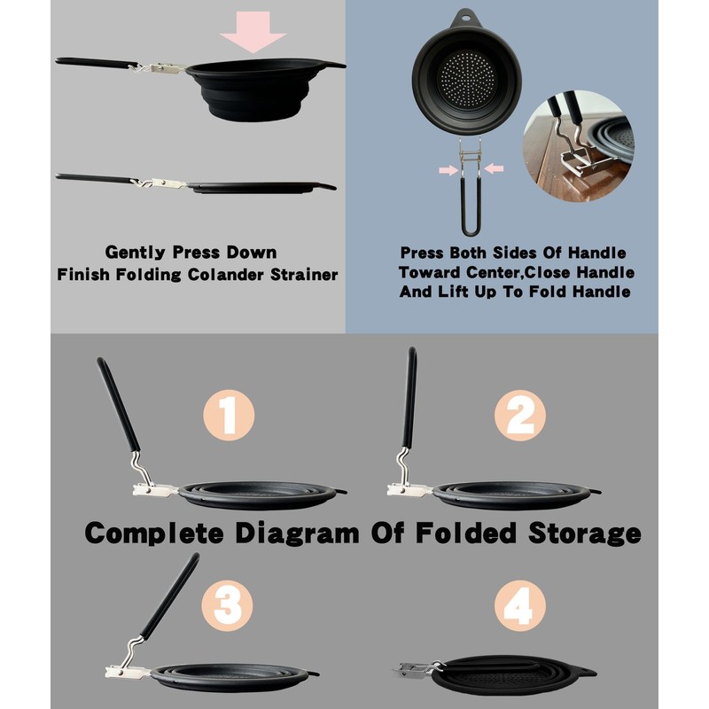 - COLLAPSIBLE COLANDER STRAINER:Colander strainer and handle is collapsible,it can be placed in drawers,cabinets or hung up to save more space in the kitchen
