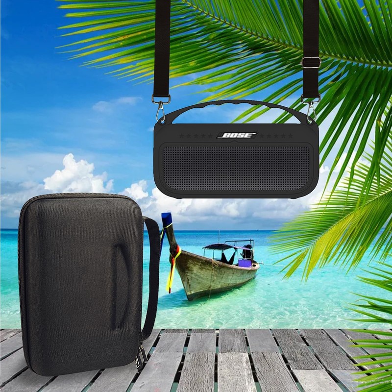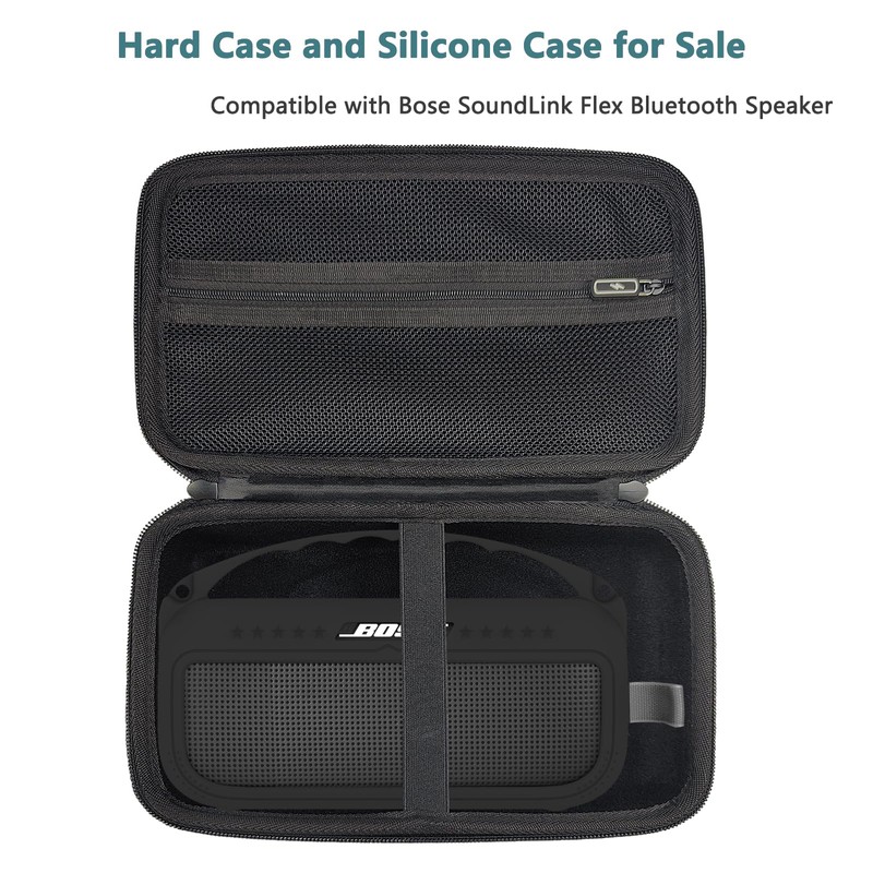 • Storage Origanizer Holder for Bose SoundLink Flex Speaker - Hard case is made of EVA matetial, silicone cover is make of soft silicone material, will give you soft feeling. Soft silicone sleeve for soundLink flex wireless speaker has accurate charging port so that no need to take off silicone shell during charging.