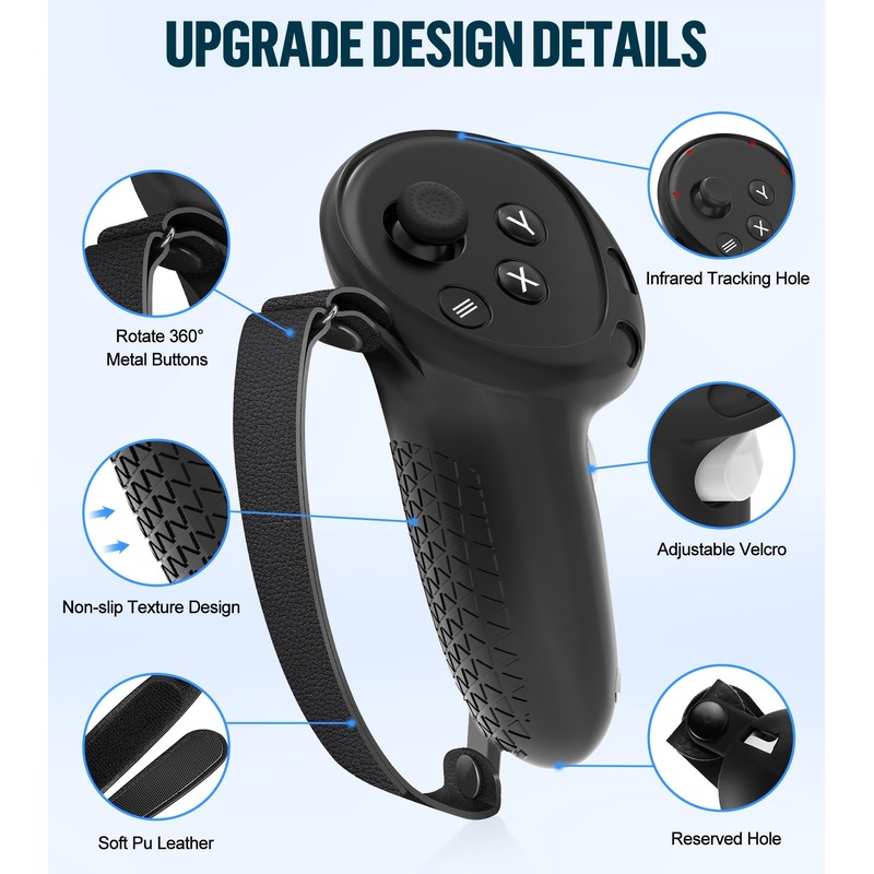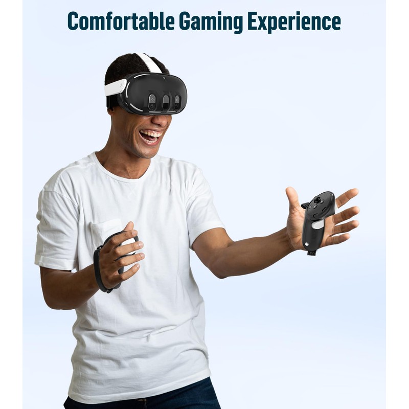 • Excellent Enhanced Comfort of Face Cover: The face cover is crafted from soft, breathable rubber, it helps maintain a clean VR gaming environment by preventing sweat on your Oculus Quest 3. Ensuring a comfortable and irritation-free gaming experience during long VR games.Controller Protection: The controller grips with adjustable hand knuckle straps to fit various hand sizes, so you can focus on the task and not worry about the Quest 3 controller flying out of your hands.