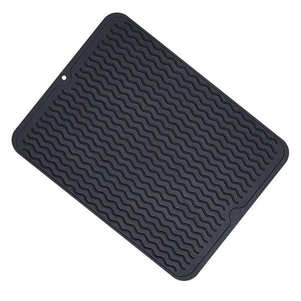 Silicone Dish Drying Mat for Multiple Usage, Easy clean, Eco-friendly, Heat-resistant Silicone Mat for Kitchen Counter, Sink, Refrigerator, drawer liner, Store Can be Rolled UP. (black 16"x12")