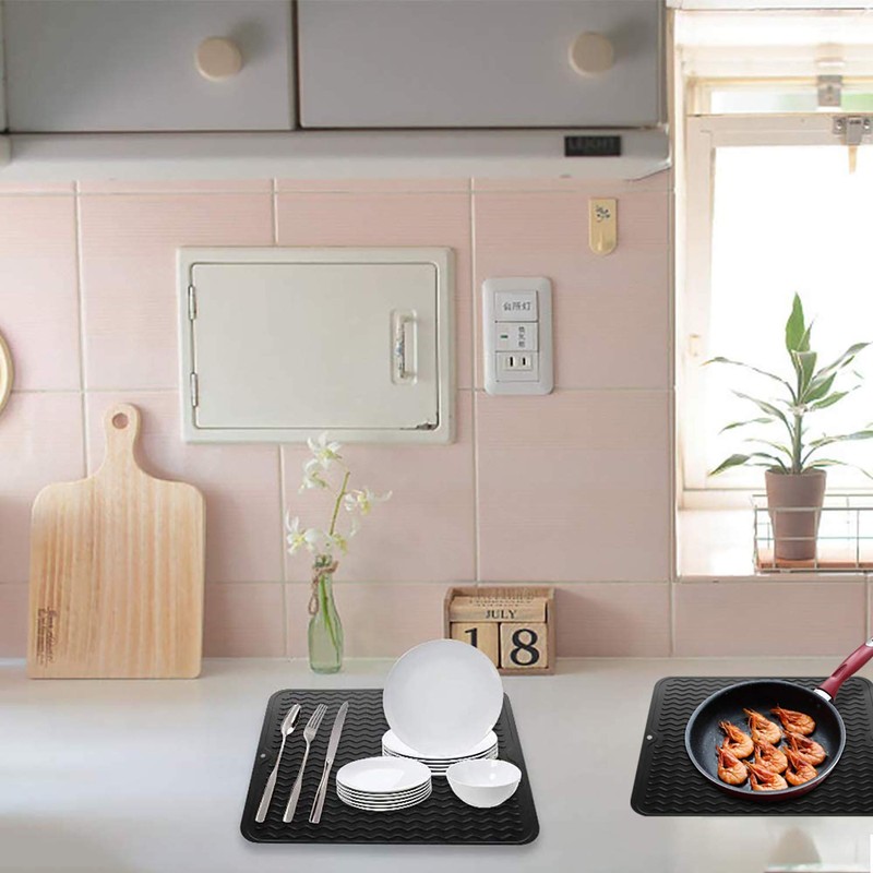 - Speical design, fast drying, easy to clean - Dish mat designed with a drainage mouth to easily deal with any water on the mat. wide, raised ridges for ventilation that ensure water to evaporate quickly and dishes to dry faster. So many uses, you'll be amazed you lived without it.