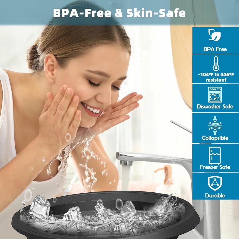 - 【Premium BPA-Free Silicone & Easy Cleanup】Crafted with safety in mind, our facial bowls use food-grade silicone that’s gentle on skin and the planet. The flexible material releases ice effortlessly,and resists odors and stains. Just rinse or toss it in the dishwasher! Durable yet lightweight, it’s built to last through daily cold therapy sessions while staying hygienic and eco-friendly.
