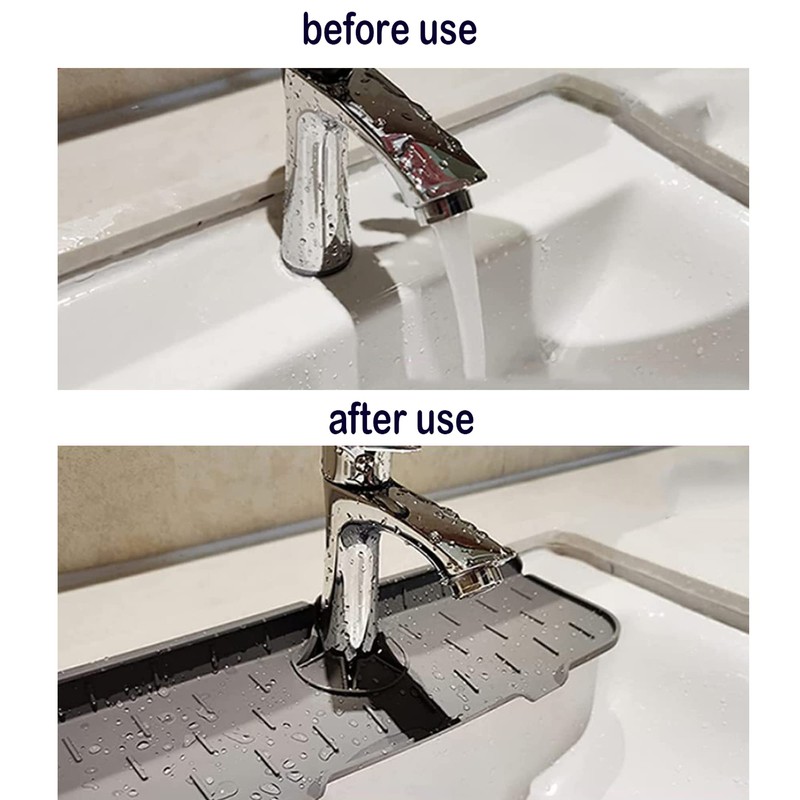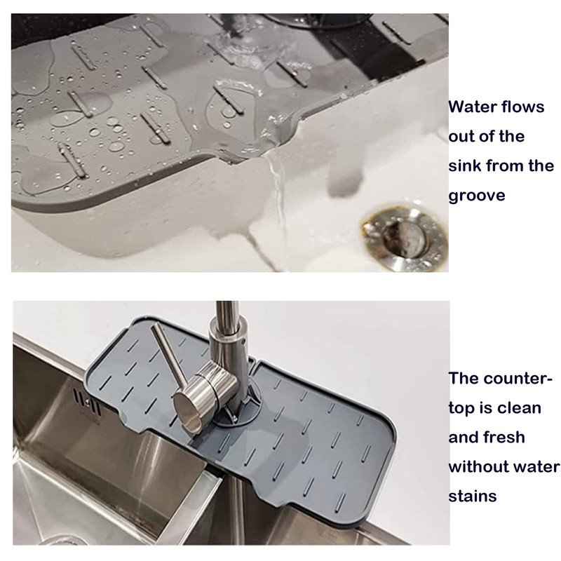 - Efficient and Practical: Our kitchen faucet sink splash guard with two drains will catch the water and it will flow into the sink, keeping the surface clean, dry and tidy at all times, giving you a pleasant mood.