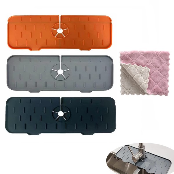 Silicone Faucet Handle Drip Catcher Tray- 3pcs Kitchen Guard Sink Splash Guard Silicone Faucet Mat for Kitchen Sink for Bathroom, Kitchen, Bar, RV and Farmhouse