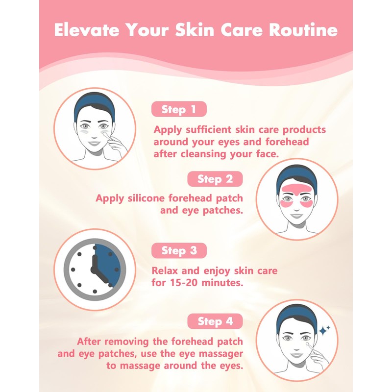 - HOW TO USE: After cleansing, apply sufficient skin care product on your face, and then attach silicone forehead and eye patches. After waiting for 15-20 minutes, remove the silicone patches and gently massage around the eyes with the metal massage stick