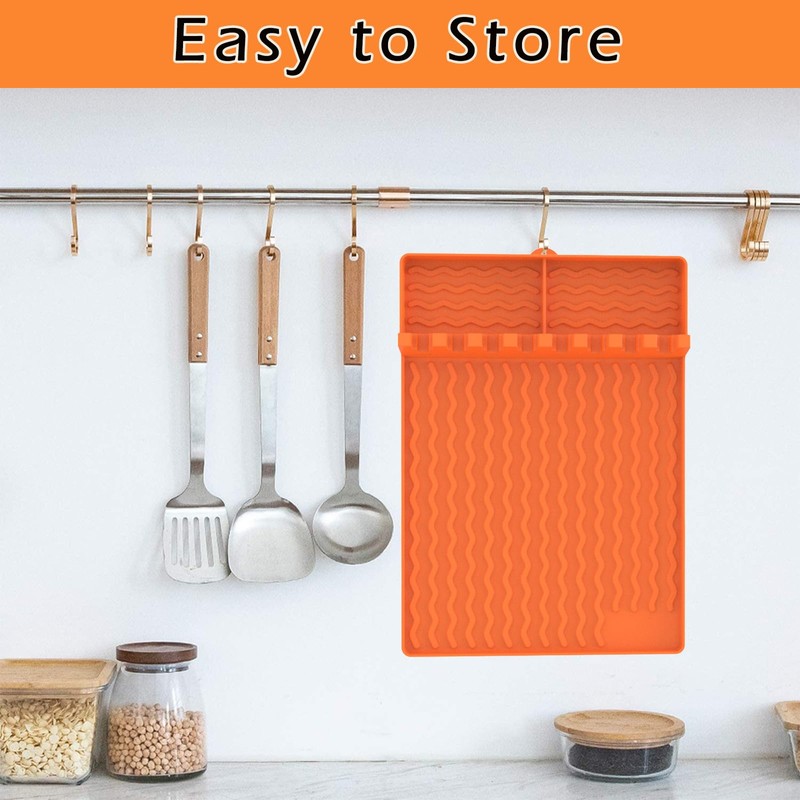 - 【Easy to Clean & Store】Silicone mat is very easy to clean by hand wash or by dishwasher. And easy to store. The silicone spatula mat can keep your kitchen stove ,countertop cleaning in cooking area.there is no more oil etc other food residues on side shelf or countertop cooking area.