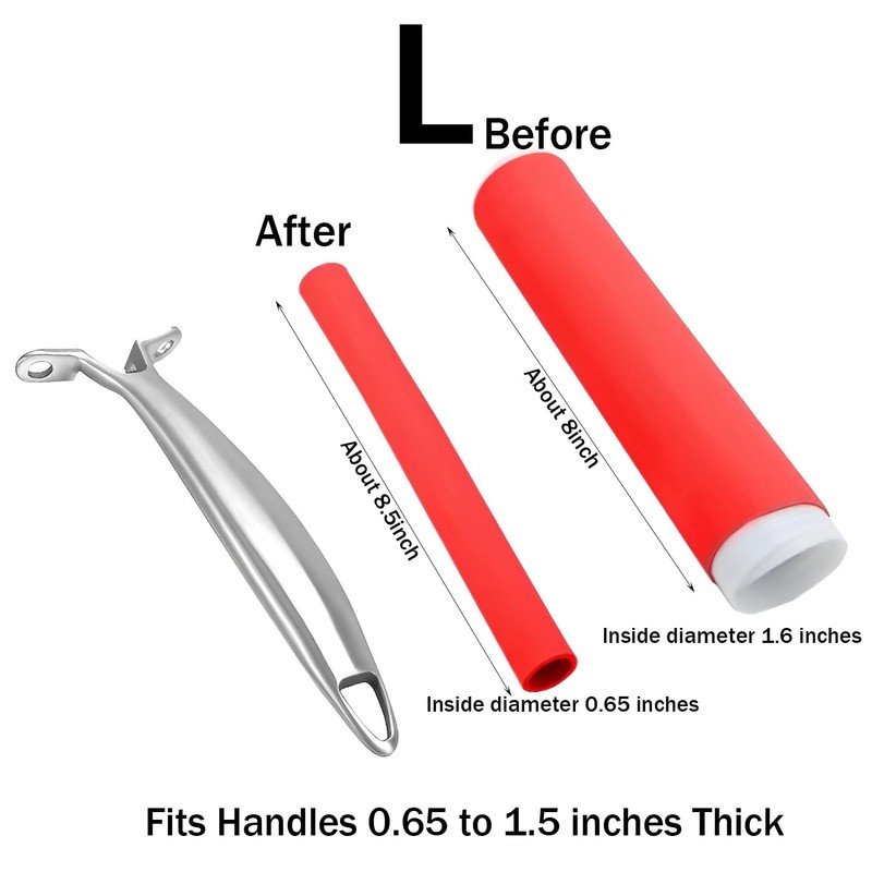 Crafted from liquid-grade silicone, each sleeve is flexible yet firm, ensuring a tight fit on a variety of handle types – from 0.5 to 1.6 inches in diameter. Perfect for cookware, as well as common household tools like hammers, pliers, and screwdrivers, these sleeves adapt to both round and irregularly-shaped handles.