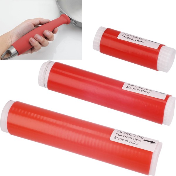 Silicone Heat-Resistant Handle Covers – 3-Pack Universal Fit for Frying Pans, Sauce Pans, Woks & Tools – Non-Slip Grip for Metal, Plastic & Wood Handles (Red - 3 - SML)