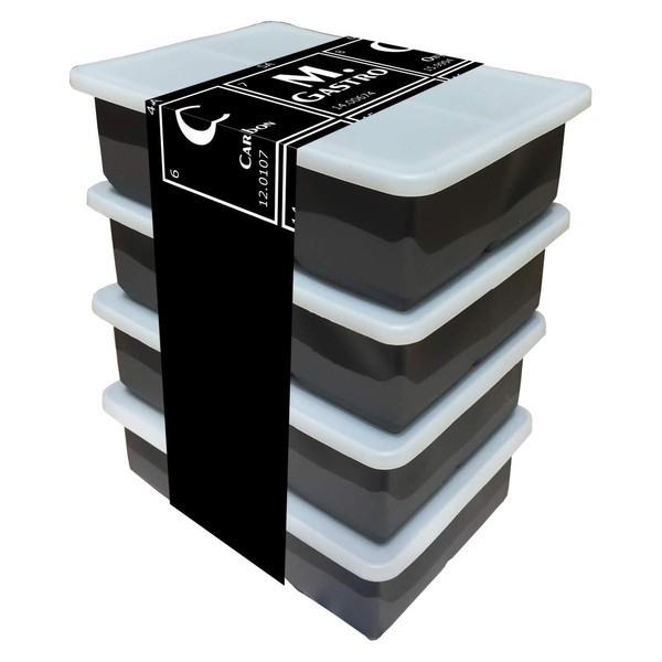 Silicone Ice Cube Trays by M. Gastro Kitchens, SAVE WITH OUR ECONOMY 4 PACK, Extra Large Ice Cubes, Space Saving Design, 6 Cavity (Cool Gray 11 with Lids)