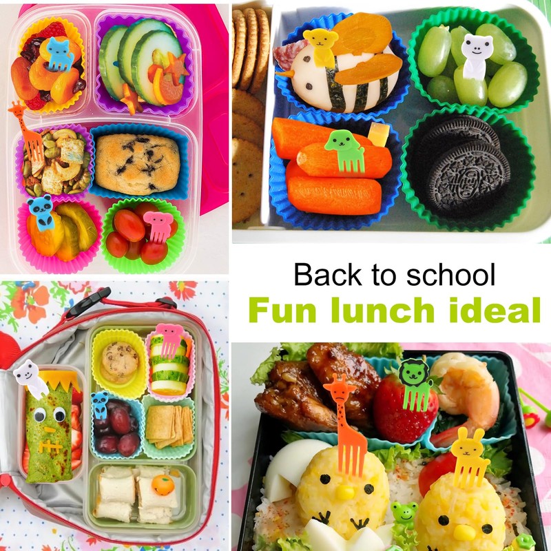 - Silicone Lunch Box Dividers: You will get 40 pcs silicone lunch box dividers with 20 pcs food picks. The silicone dividers are pretty flexible to keep dry food separated from wet food. Fun and cute food picks encourage picky eaters to eat different foods, especially vegetables and fruits. They are perfect choice for bento box accessories.