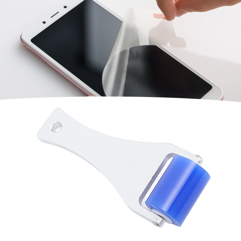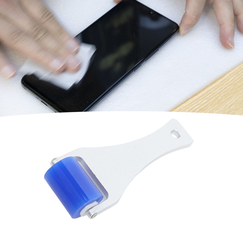 Silicone Manual Dust Roller Cleaner Tool with Static Electric Function Adsorb Small Impurities Aluminum Handle Blue Roller 3cm / 1.2in
