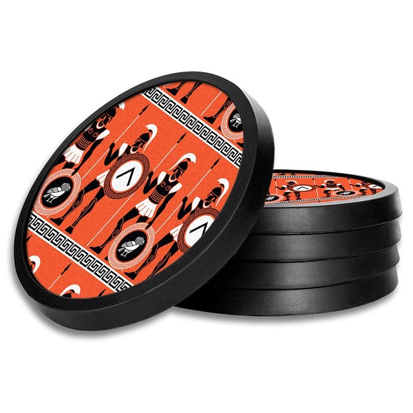 Silicone Non-Slip Drink Coasters with Removable Printed Absorbent Felt Pad - Set of 4 - Ancient Greek Warriors