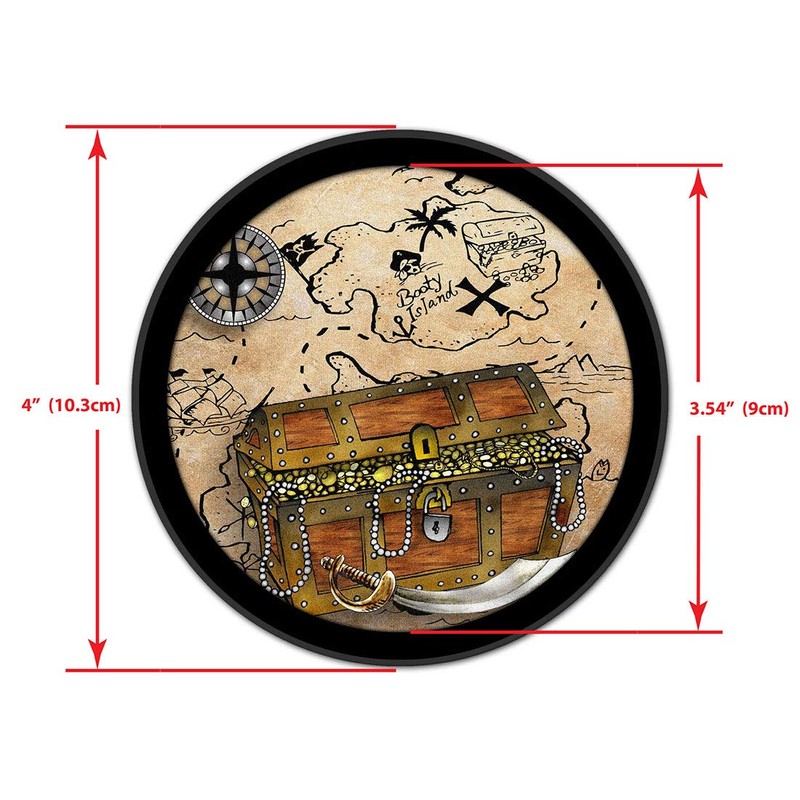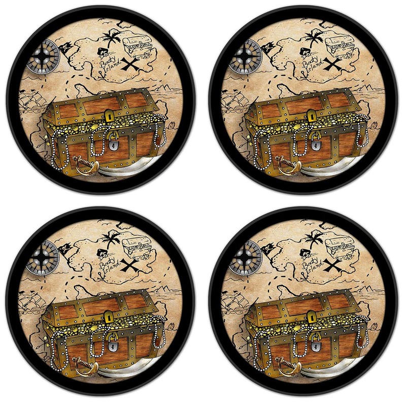 • SET OF 4 ABORBENT COASTERS: Set of four unique silicone and absorbent printed felt drink coasters that prevent drips, puddles, and water stains to your fine furniture. Suitable for indoors or outdoors. Works great for hot or cold drinks. Perfect for high humidity locations. Printed with colorful image of Treasure Chest