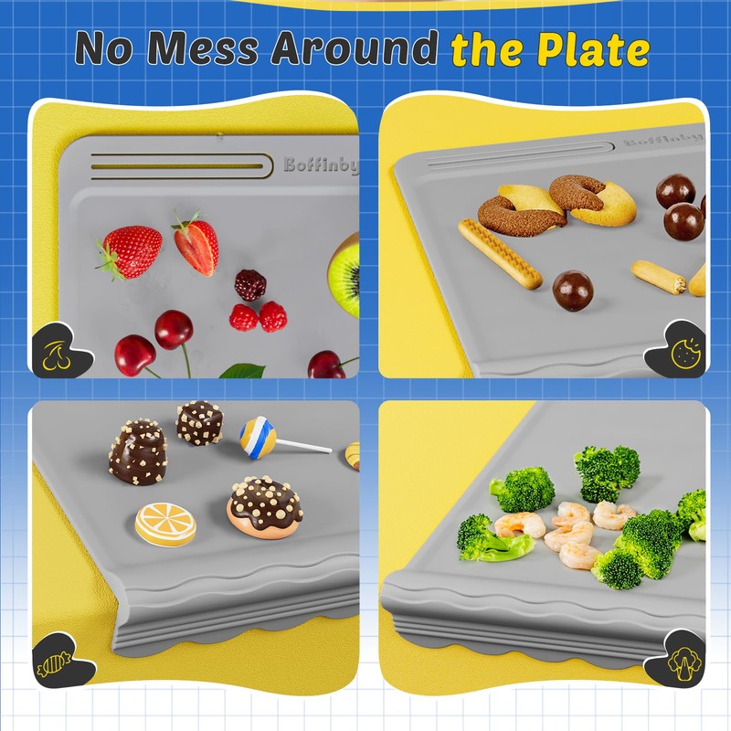 - Food-Grade Material: Non-toxic, FBA free, 100% food-grade silicone placemat designed for dining tables, high chair trays and picnic tables to keep food clean and prevent bowl tipping.