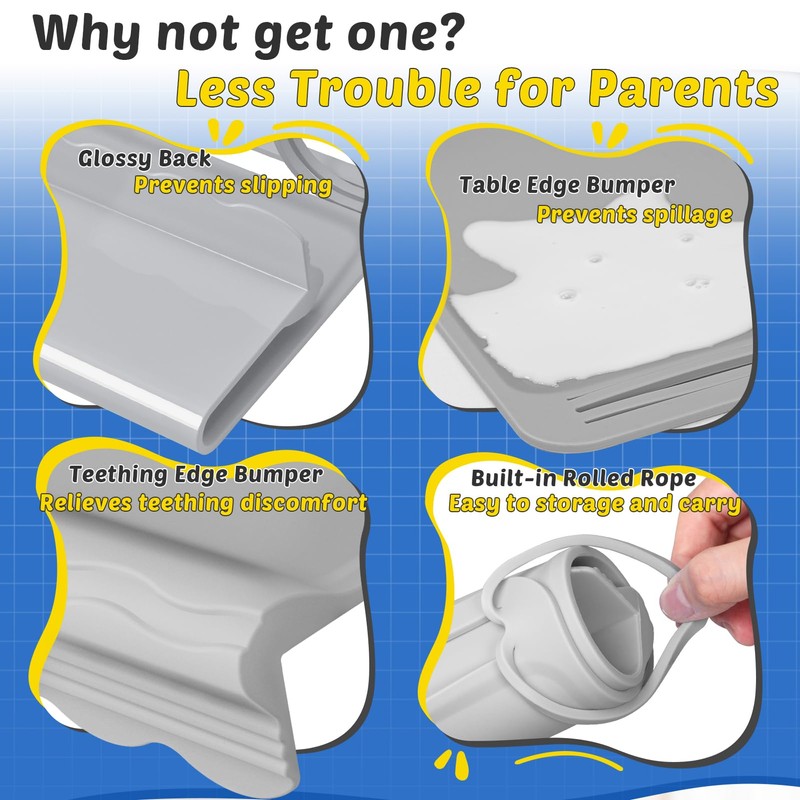 - Teething Edge Bumper: The toddler placemat has a textured soft bumper along the front edge to cushion against table impacts and soothe teething gums, doubling as a safe teething tool.