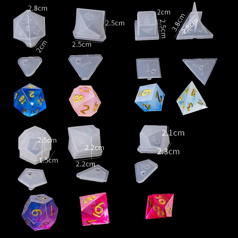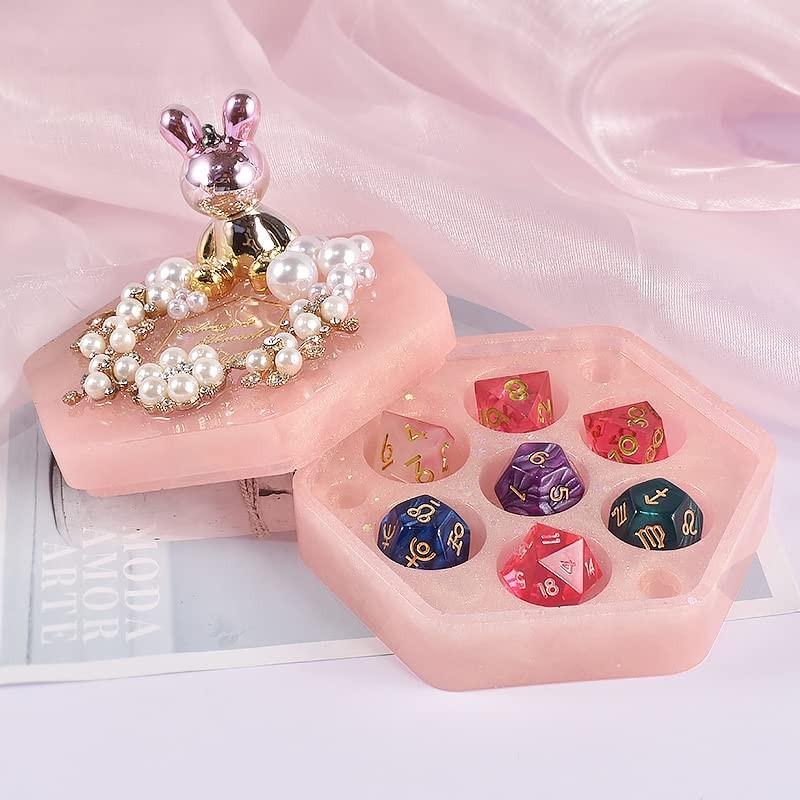 Silicone resin dice molds for resin casting dnd(7Pcs) with Hexagon Dice Box,Epoxy polyhedral dice mold set d&d making kit,Fillet Square Triangle Dice Mold Digital Dice Games Handmade Craft Tool