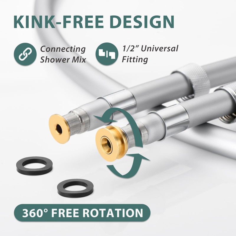 - 360 ° Rotation Without Twisting:Our Shower Hose Can Rotate 360 ° Without Twisting Design, And It Is Also Very Flexible And Comfortable To Use. You Can Easily Enjoy Every Shower