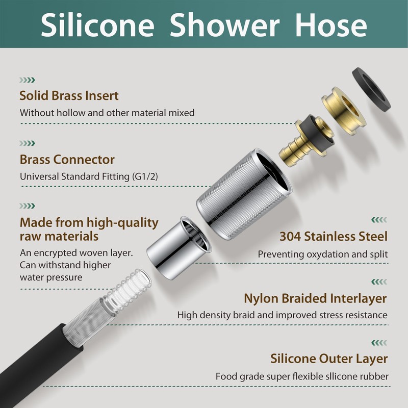 - High Quality Materials:Our Shower Nozzle Hose Has Three Layers Of Material (Inner Layer Of Pe Material, Middle Layer Of Thickened Nylon Braided Layer, And Outer Layer Of Soft Silicone Adhesive), Which Has Characteristics Such As High Temperature Resistance, High Pressure, And Explosion-Proof