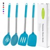 Silicone Spatula Spoon Set for Cooking, Food Grade BPA Free Silicone Kitchen Spatulas Spoons Utensils for Nonstick Cookware, 446°F Heat Resistant Silicone Slotted Spatula Mixing Stirring Spoons, Blue