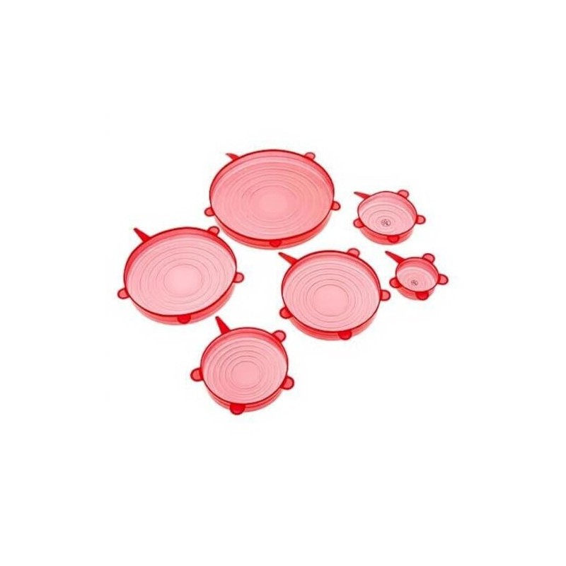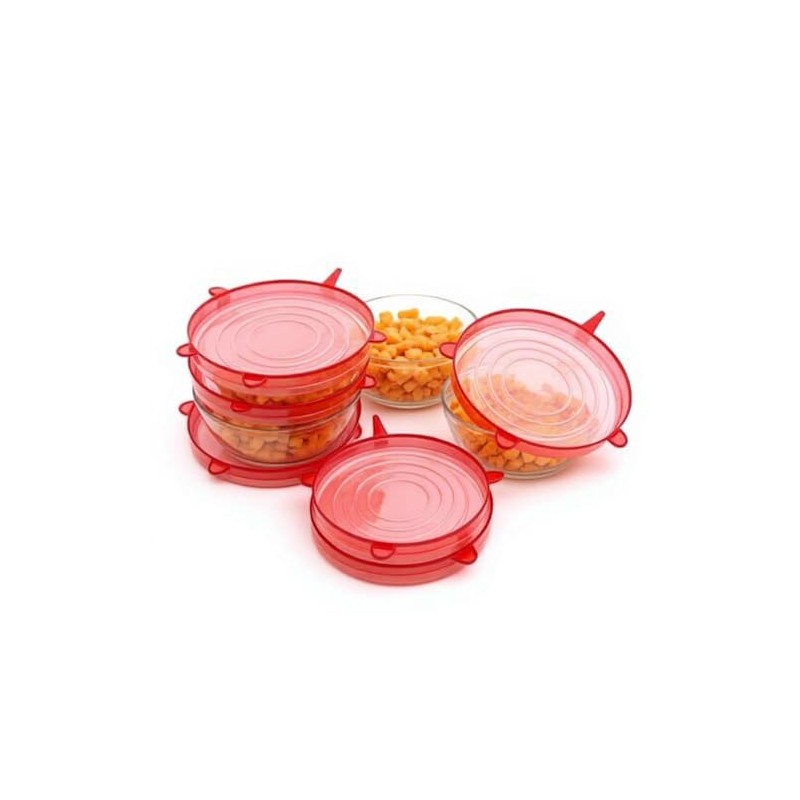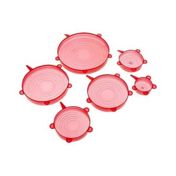 Silicone Stretch Lids Set of 6, Universal Food Storage Covers, BPA-Free, 2.6-8.3 Inches, Red