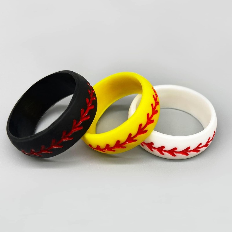 Silicone Wedding Ring for Men Baseball,3 Packs Comfortable Fit, 2.5 mm Thickness,from The Latest Artist Design Innovations to Leading Edge Comfort (9.5-10)